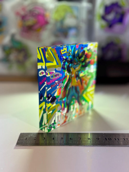 Lucario CustomMade Pokemon Crystal Acrylic Block 10x10x1.5cm-Gift For him-Pokemon fan-Pokemon TCG PTCG-Pikachu Charizard Full Art